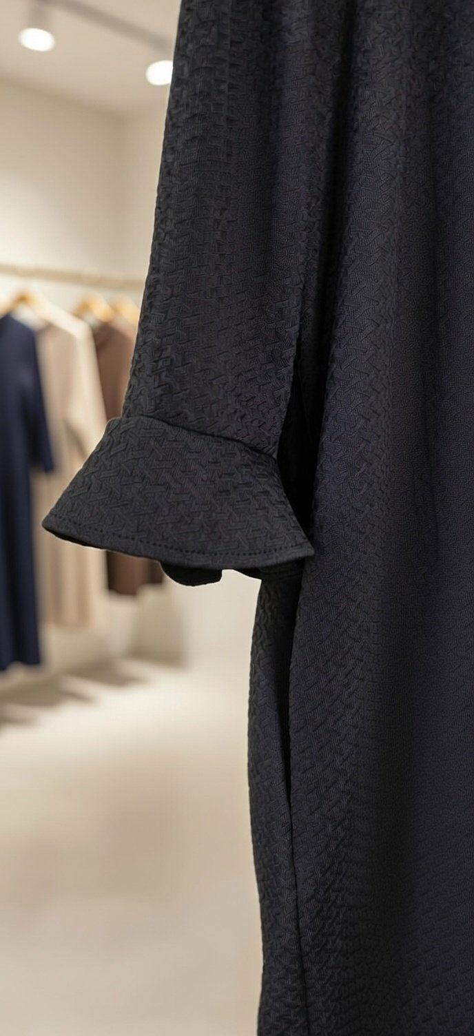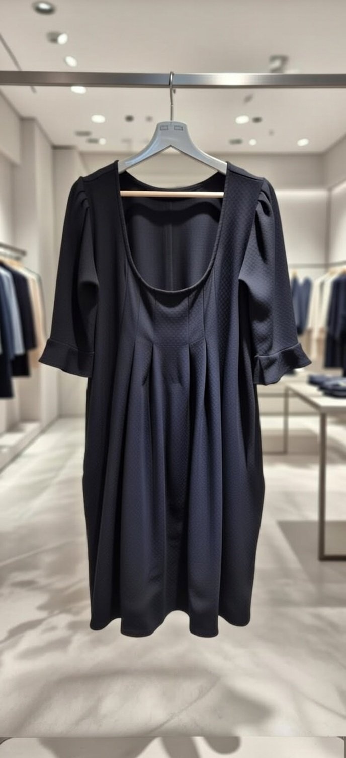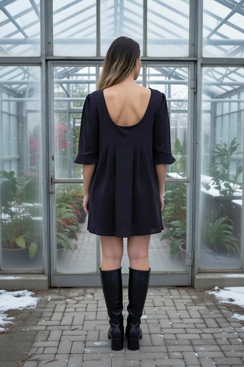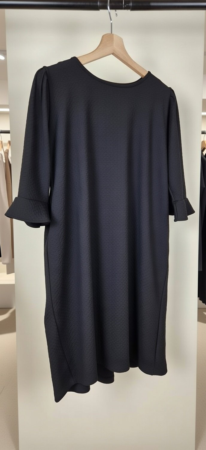 Vestido fino em malha texturada. decote em barco e aberto nas costas. manga em flor 3/4.  Poliéster algodão e elastano.